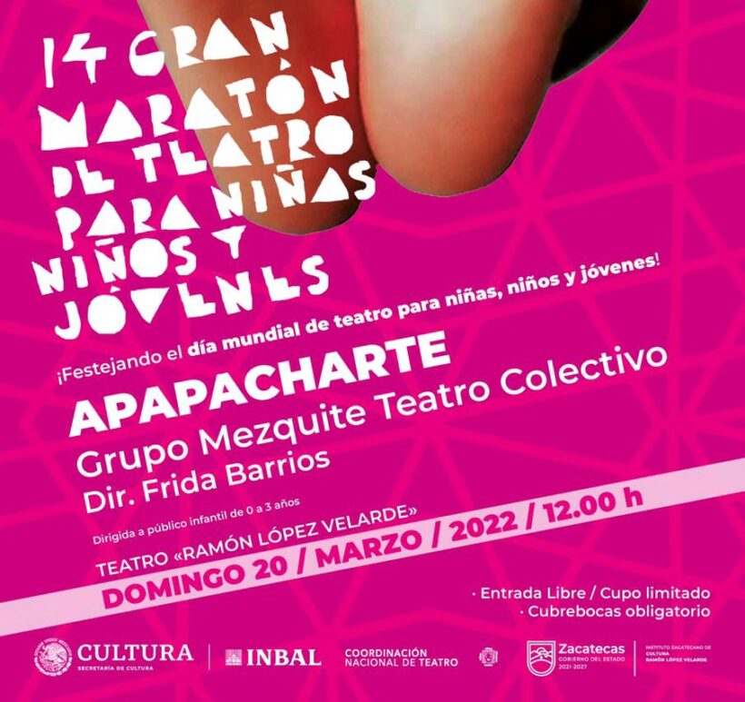 Zacatecas formará parte del 14º Gran Maratón de Teatro para niñas, niños y adolescentes, que se realizará el 19 y 20 de marzo, a nivel nacional, bajo la organización de la Coordinación Nacional de Teatro, el Instituto Nacional de Bellas Artes y Literatura, y el apoyo del Instituto Zacatecano de Cultura “Ramón López Velarde”.
